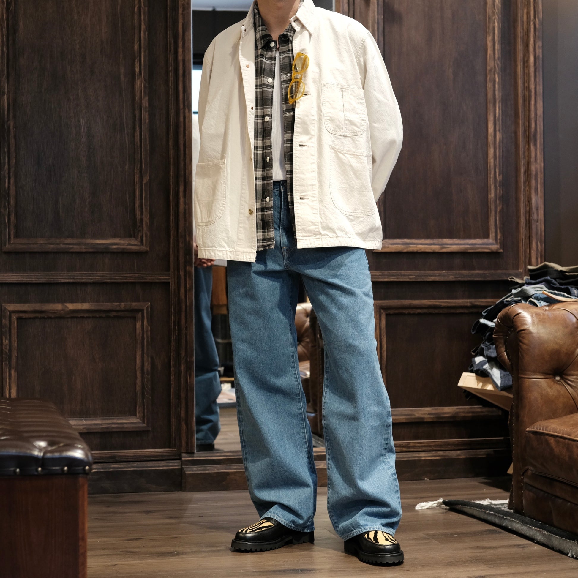 We offer hemming service to all trousers purchased at LH. The alteration fee varies depending on the stitching method. We will shorten the trousers using the original stitching method. All jeans from LH will be hemmed with a chain stitch sewing machine. Washed jeans will also be hemmed with a chain stitch sewing machine while keeping the original faded hem.