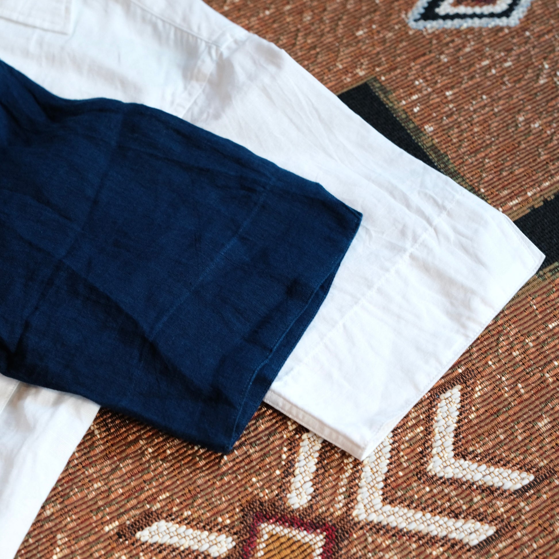 - Indigo: 100% Linen / White: 60% Cotton & 40% Linen