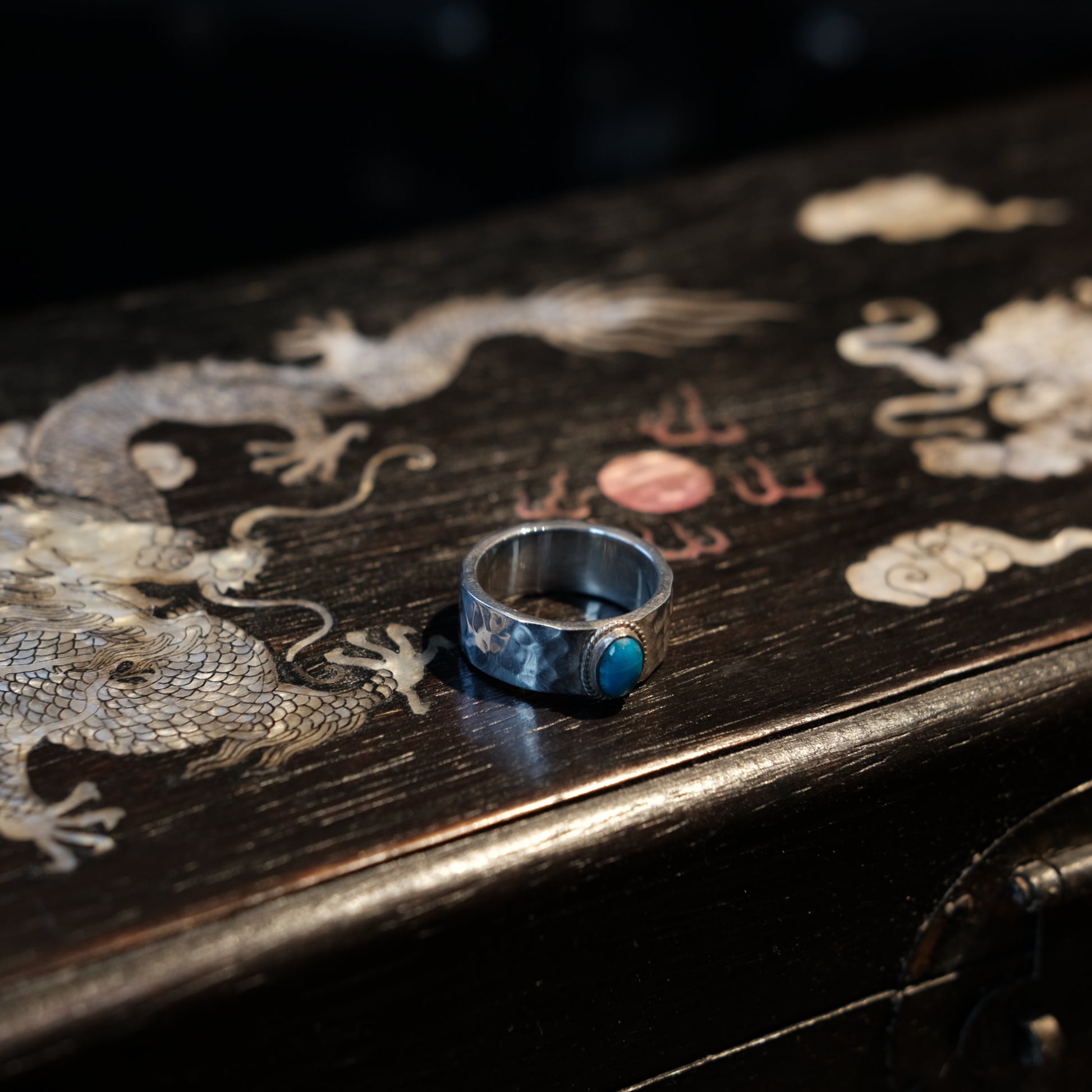 Dear Blossom Turquoise Hammered Ring (R-017)